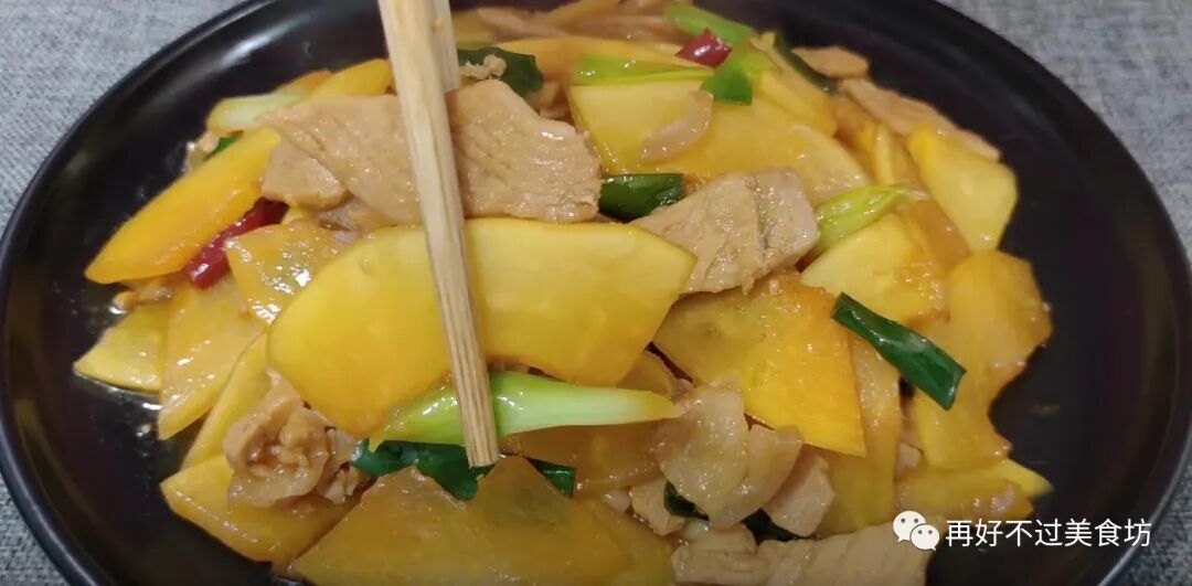 6、最后把木瓜放进来翻炒均匀,再加入一点点清水,等木瓜炒至断生,就关火盛出来,一道非常好吃又简单的木瓜炒肉片就做好了。