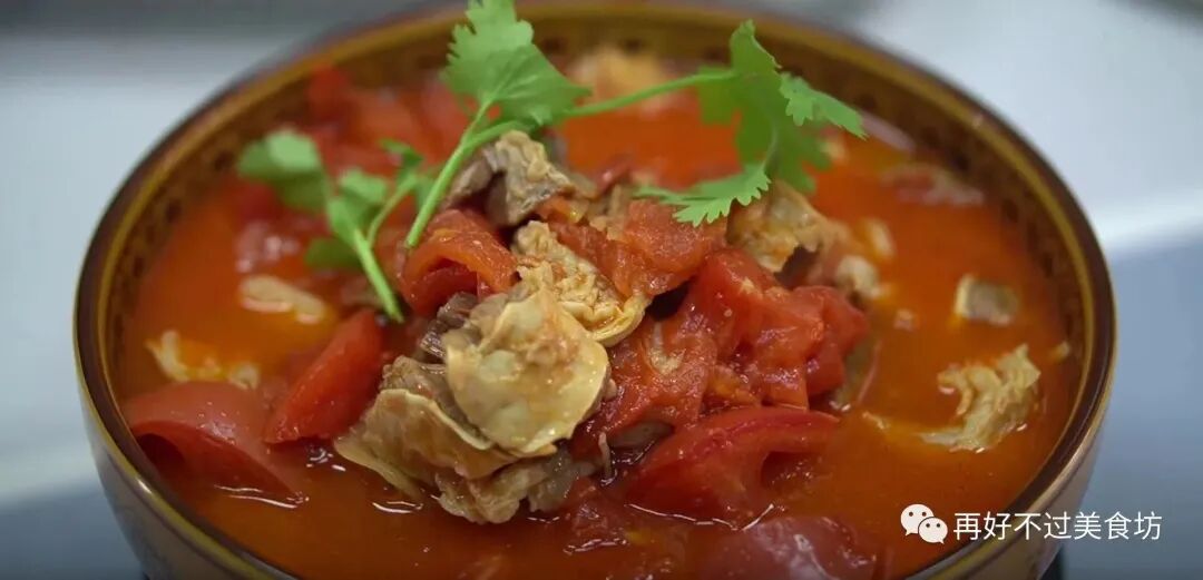 9、最后再放上一点香菜,好看又提味,这样一份西红柿炖牛肉就制作完成了,家里以后再做这道菜,像我这样做,牛肉软烂入味,汤汁嘎嘎好喝。