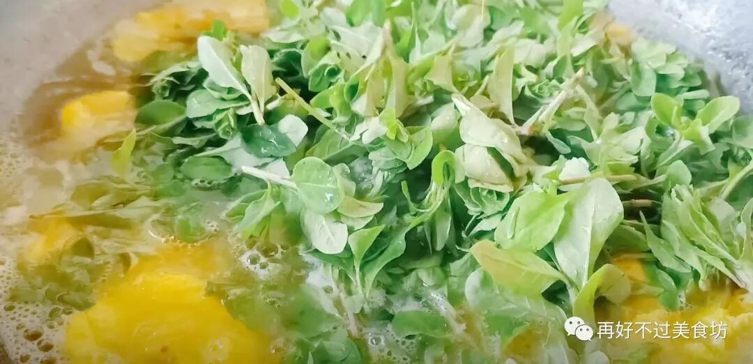 6、水开后再下入鸡蛋,鸡蛋煮上一分钟后,再放入枸杞尖,枸杞尖只需要煮上两分钟,就可以出锅了,这样吃起来脆嫩爽口,煮太久反而口感不好。