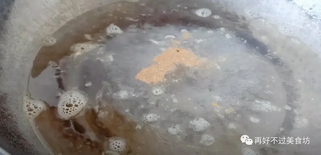 7、下面重点来了,添汤的时候,尽量要加入开水,因为牛肉比较耐火,所以水一定要一次性加足,再少加点老抽,提个底色,盐先不用放,扣上锅盖,烧开以后转成小火,给它咕嘟一个半小时。