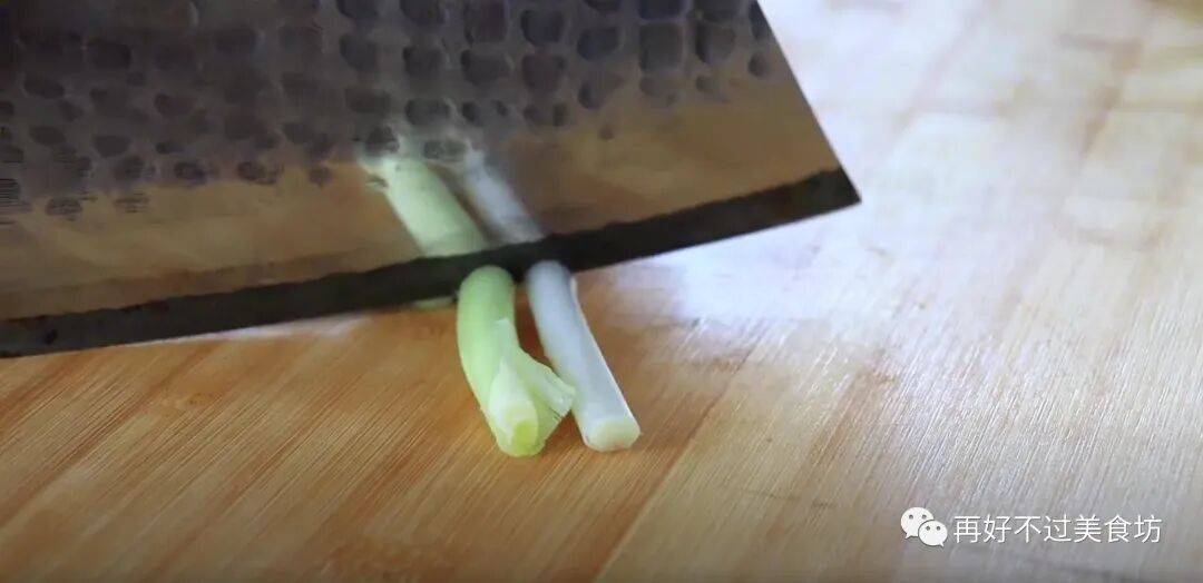 3、接下来准备一点葱,给它切成一段段的,切好后,也放一旁备用。