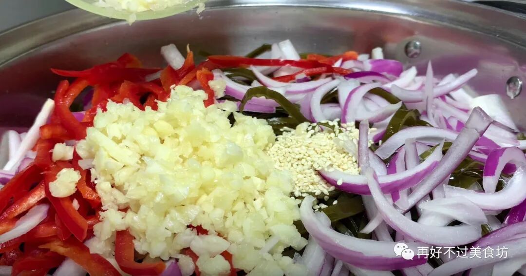 主要食材:干海带、洋葱、红菜椒、大蒜、香菜