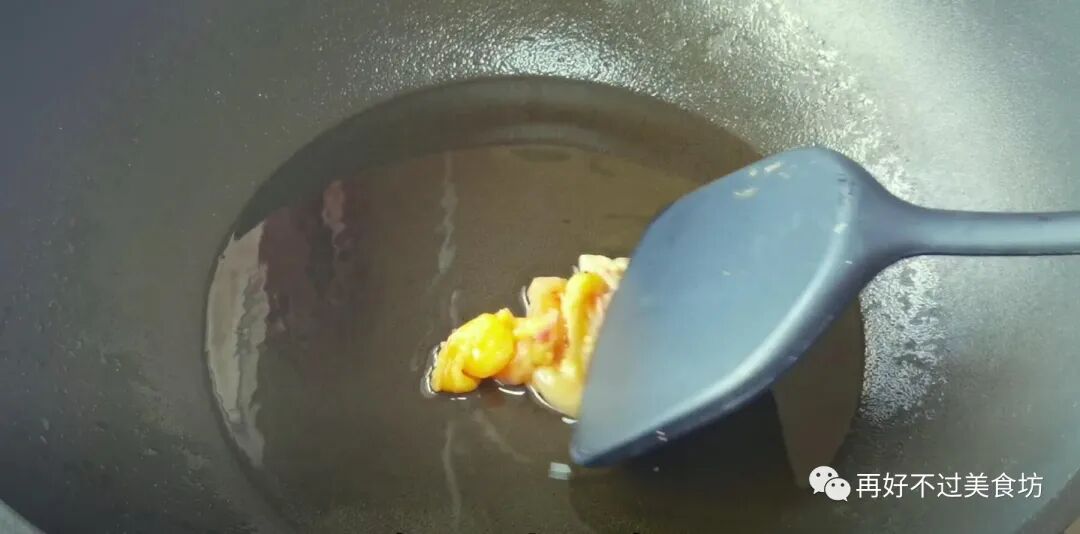 8、炒鸡肉之前有一点要注意,那就是如果用铁锅来炒,首先一定要热锅冷油,让锅先过一遍油再放油,这样炒鸡肉就不会粘锅,因为粘锅会导致汤汁不够清爽了。