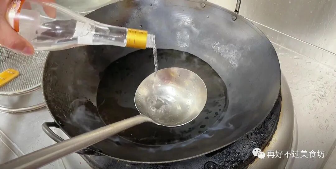 9、等食材都准备好后,下面开始烹饪,锅中加入适量的清水,再加入少许的高度白酒,这样能有效地去腥。