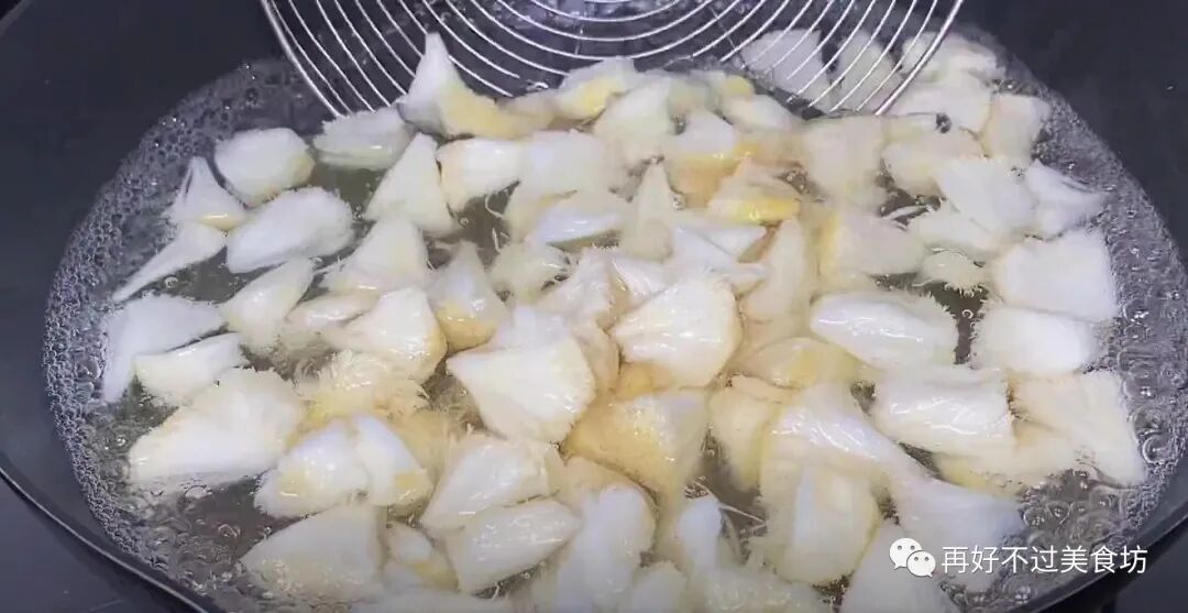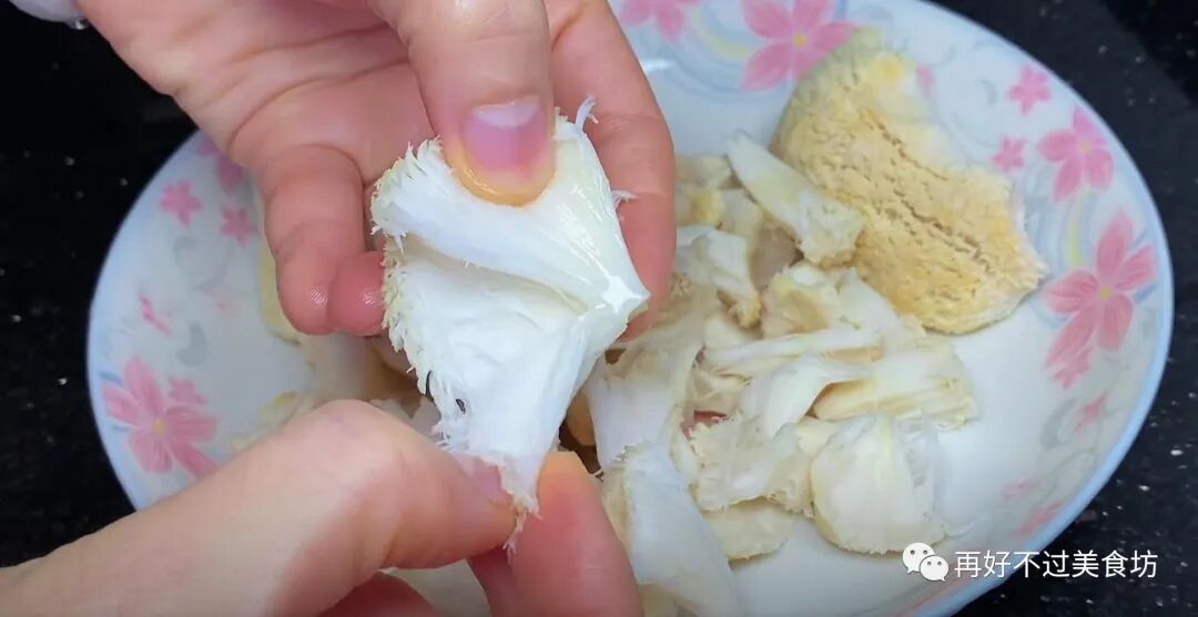 5、等锅中水开后,倒入撕成小朵的猴头菇,焯水一分钟后捞出来备用。