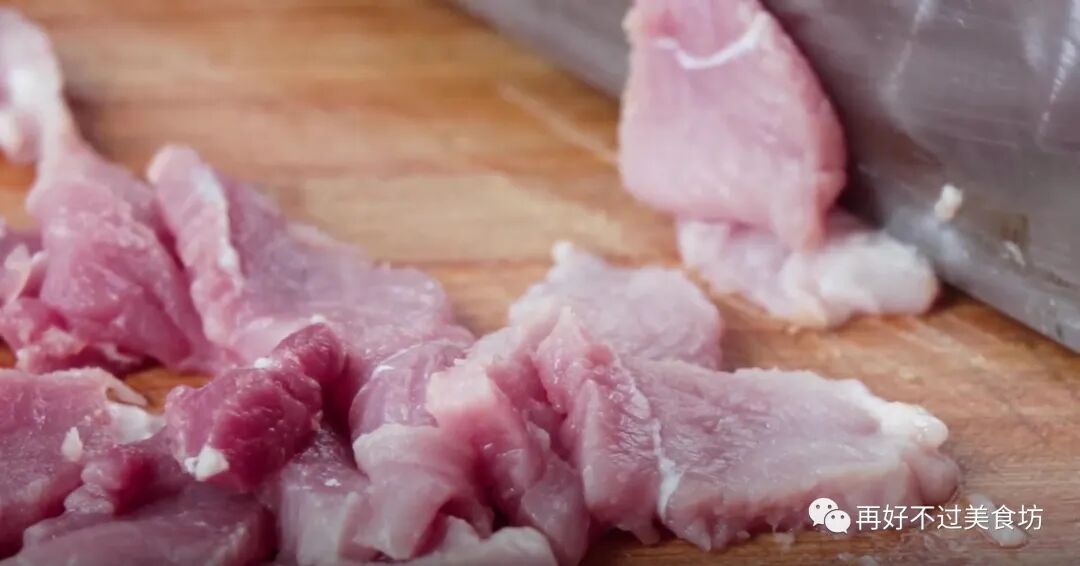 1、将瘦肉清洗干净,放在案板上,给它改刀切成片,切好之后,把它放进碗里。