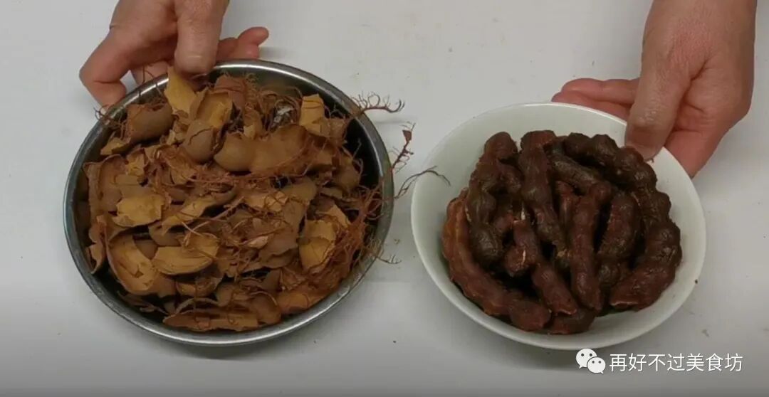 3、甜酸角是钙中之王,是补钙最好的一个水果,轻轻的一捏,壳就开了,很容易剥,一磅的甜酸角剥好以后,就只剩将近300克的甜酸角。