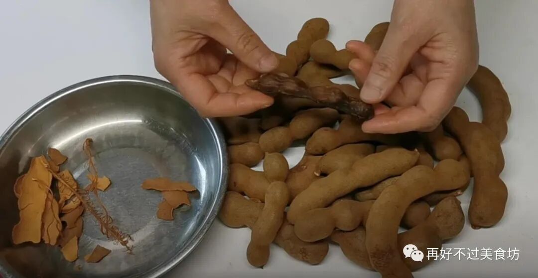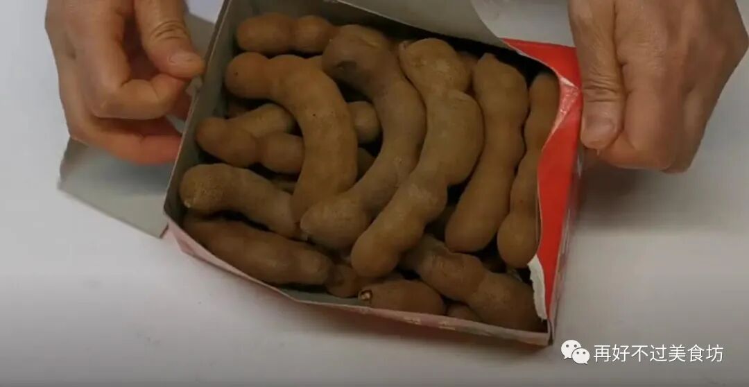 1、准备一些甜酸角,甜酸角和酸角外形很相似,但是它的果肉容易剥离,是微酸多甜的,香味比较浓,肉厚,肉质也很细腻,它含糖量比较高,口感比酸角要好。