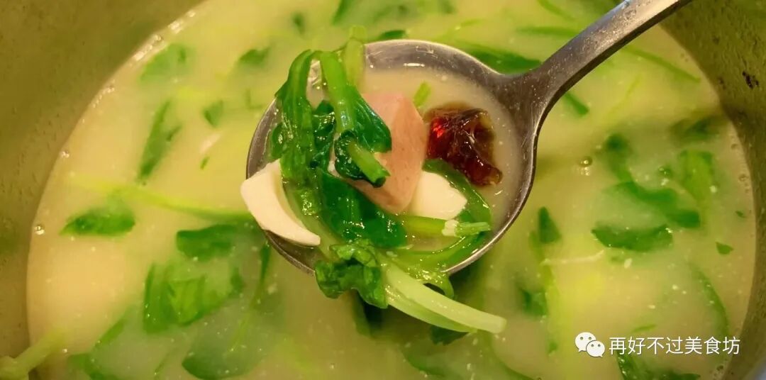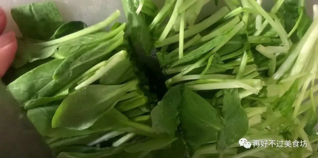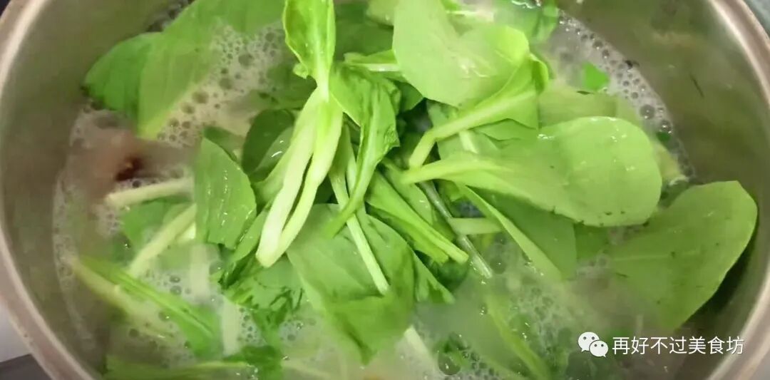 6、等汤再次煮开后,放入切好的鸡毛菜,给它煮上两分钟就可以出锅了,做法简单又好喝,喜欢的朋友,赶紧收藏起来试试吧。