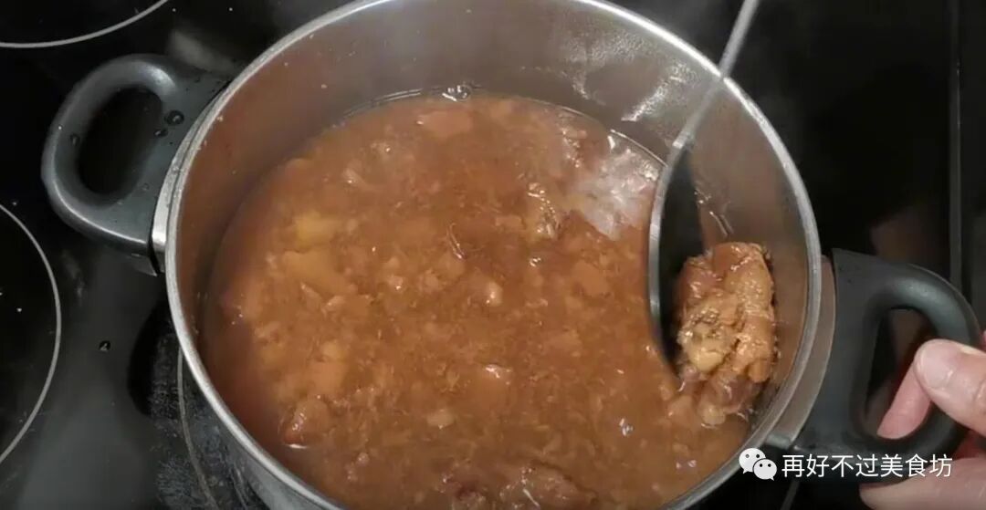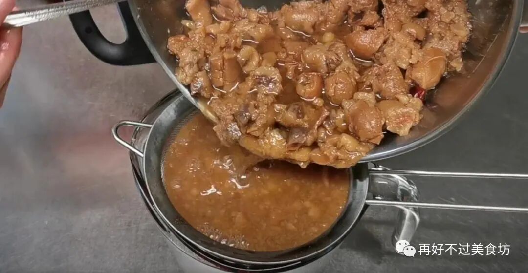 6、将过滤好的甜酸角汁,倒入另外一口锅中,再往里加一勺红糖,可多可少,也可以不加。