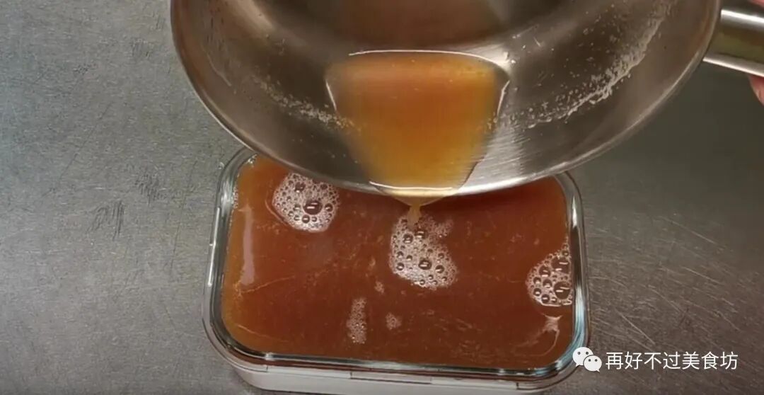 8、下面将加工过的甜酸角汁,倒入玻璃保鲜盒中,倒进来以后不用放冰箱,等到室温就凝固了。