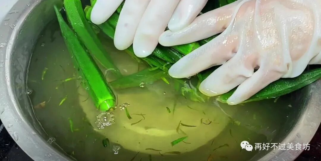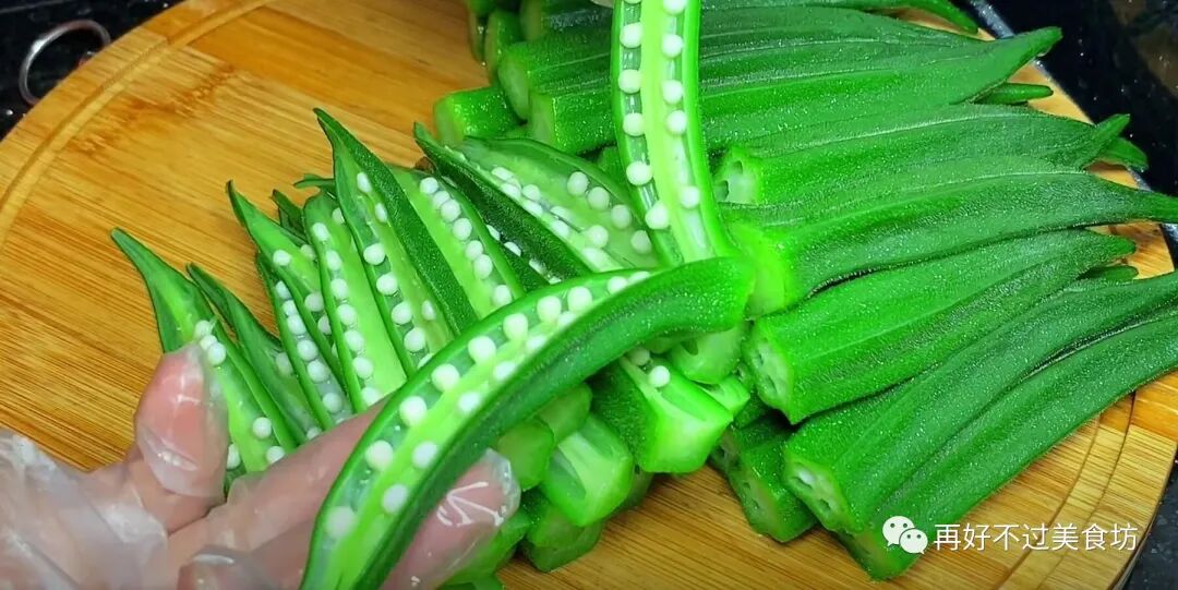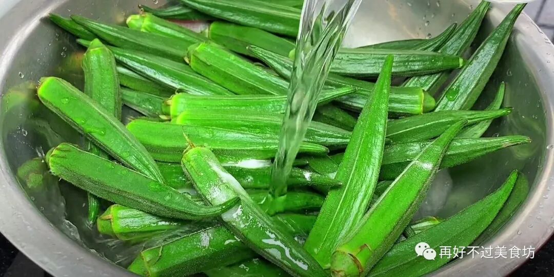 5、很多人做秋葵的时候,总是喜欢切头去尾,或者从中间片开,秋葵里面含有果胶,还有黏液蛋白,切开再去烧水,营养很容易流失掉。