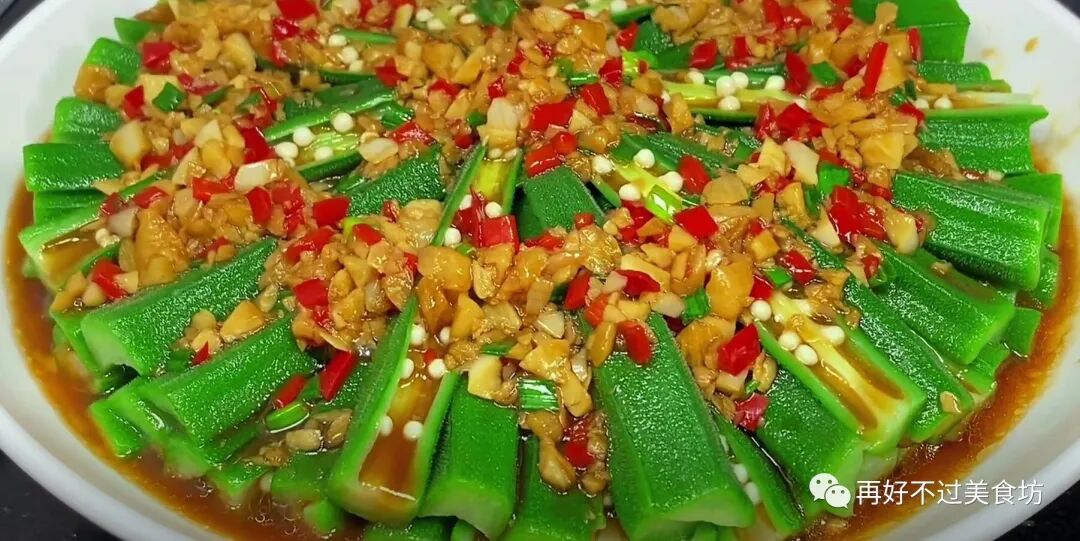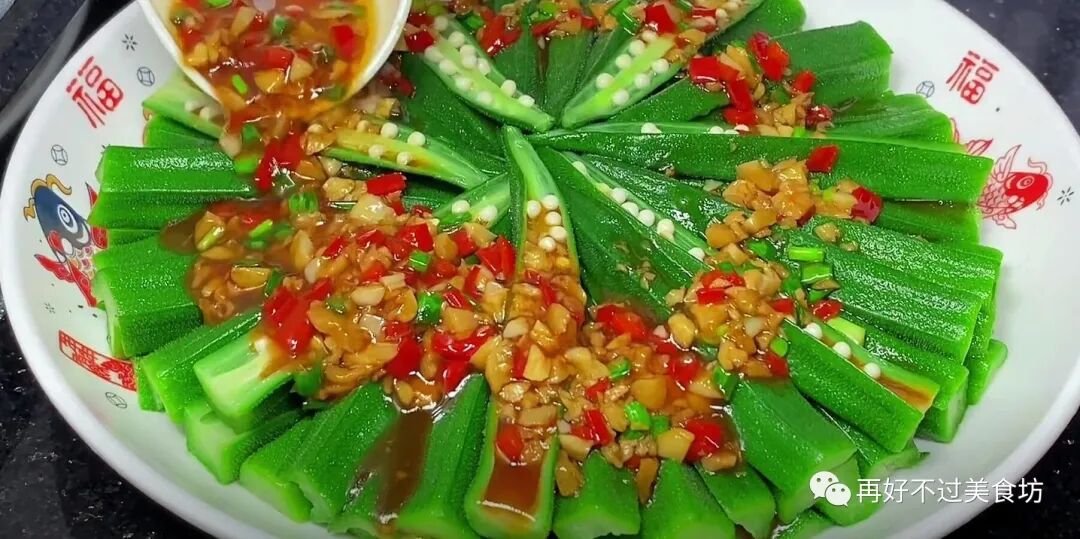 12、下一步就可以把煮好的汤汁,直接淋到秋葵上面,秋葵像我这样做,鲜嫩脆爽,营养不流失,好吃下饭,做法也简单,喜欢的朋友,赶紧收藏起来试试吧。