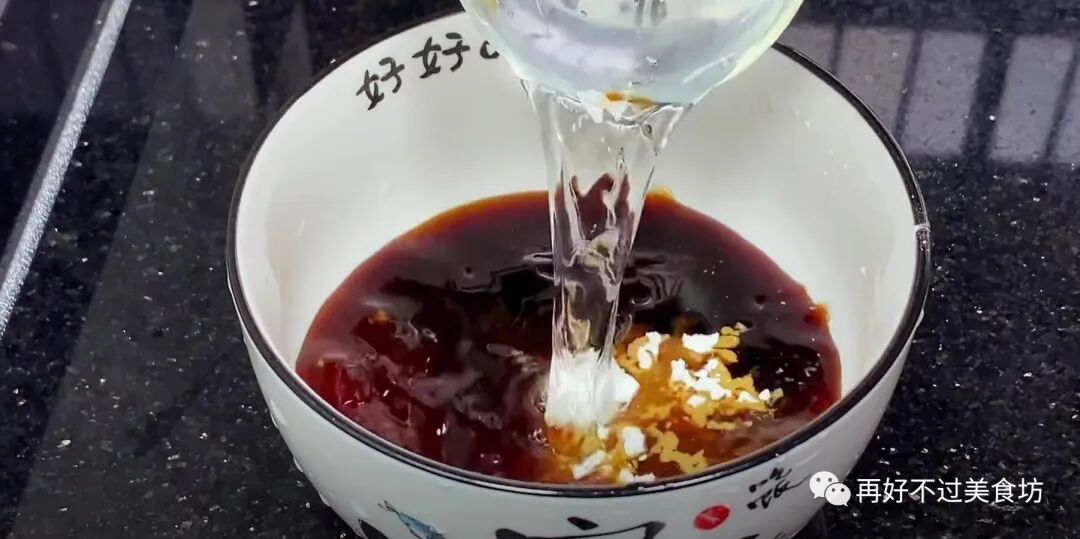 10、接下来调一个料汁,一勺生抽,少许蚝油,少许鸡精,半勺淀粉,两勺清水,然后给它搅拌均匀后,就放一旁备用。
