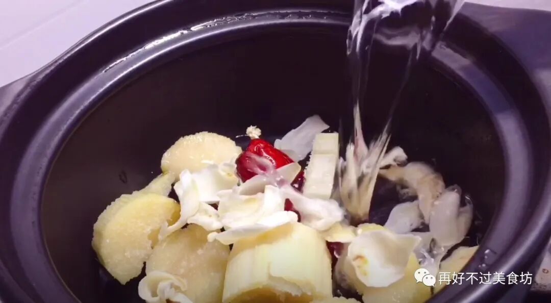 4、接下来把甘蔗、红枣、百合放入锅中,再加入适量清水,开大火煮开后,再转小火煮半个小时。