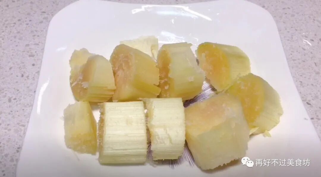 2、趁这个时间,来处理一下甘蔗,将买回来的甘蔗去皮,然后再切成小块,全部切好之后,就放盘子里备用。