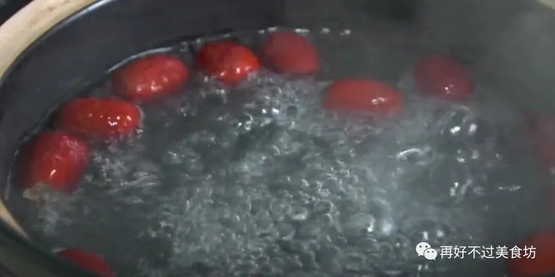 3、下一步往锅里加入足量的清水,先把红枣下锅,将大火烧开,烧开以后,改中小火给它煲十分钟。