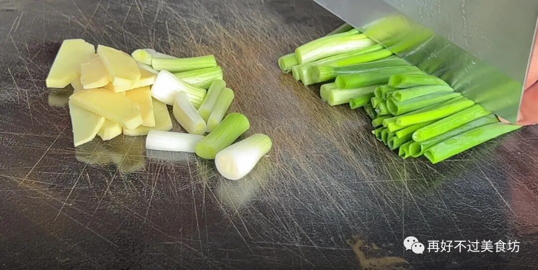 2、配料就准备点姜葱,把姜切成薄片,小葱切成小段,全部切好后,放入小碗中备用。