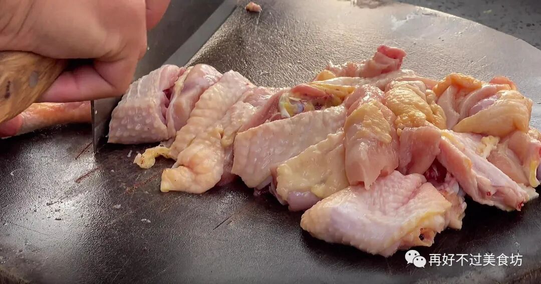 1、准备一只处理好的鸡,稍微清洗一下,就放到案板上,给它砍成小块,全部剁好之后,就放一旁备用。