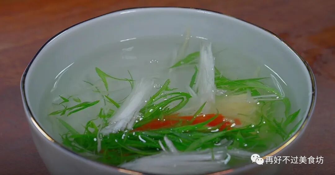 12、这时候鱼也已经蒸好了,把上面的葱丝夹出来扔掉,再放上提前泡好的三丝,然后淋上热油激发出香味,最后淋上调好的料汁,这一份清蒸鲈鱼就做好了。