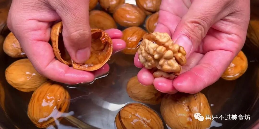 1、准备一些核桃,将它放入蒸锅中蒸上5分钟,然后把蒸好的核桃放凉水里,这样的核桃不仅容易剥,核桃仁还非常完整,剥好后,先放一遍备用。