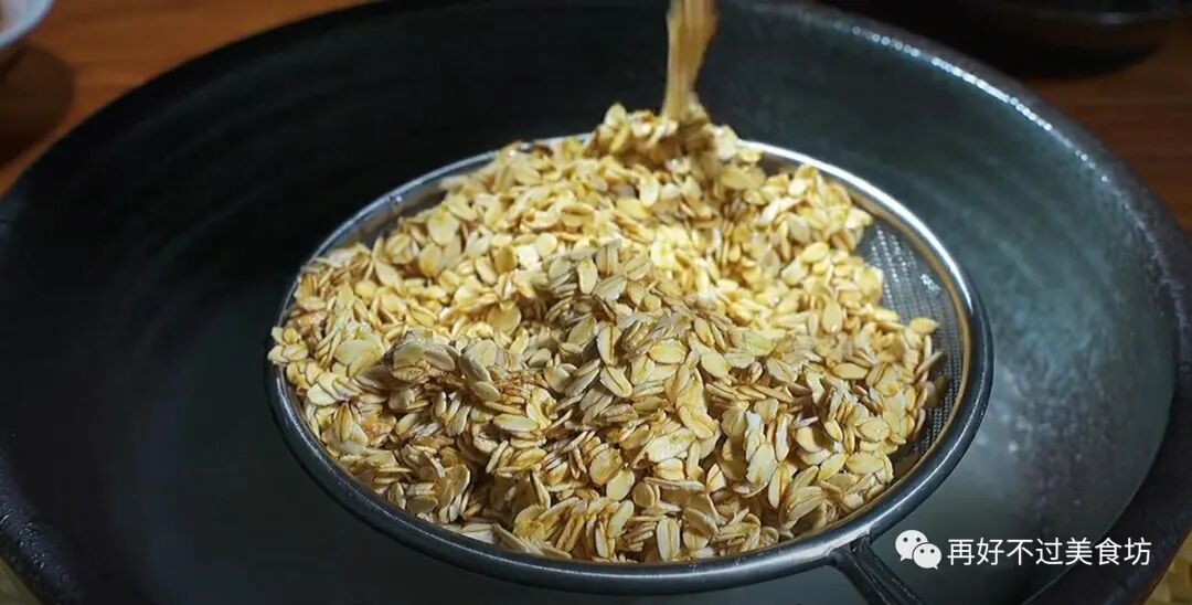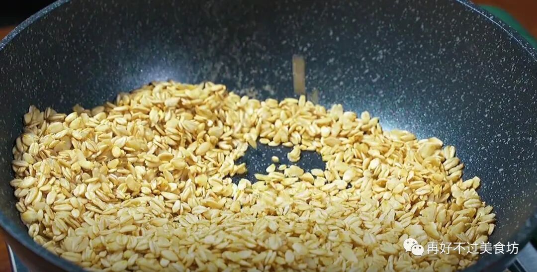 2、将洗干净的燕麦倒入锅中,开小火慢炒,买燕麦的时候,可以通过气味判断燕麦的好坏,好的燕麦,闻起来有一股天然的香气,碎末状的最好不要购买,等把燕麦表面的水分炒干就可以了,不用炒熟,盛出放凉后备用。