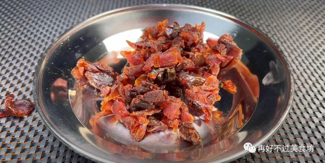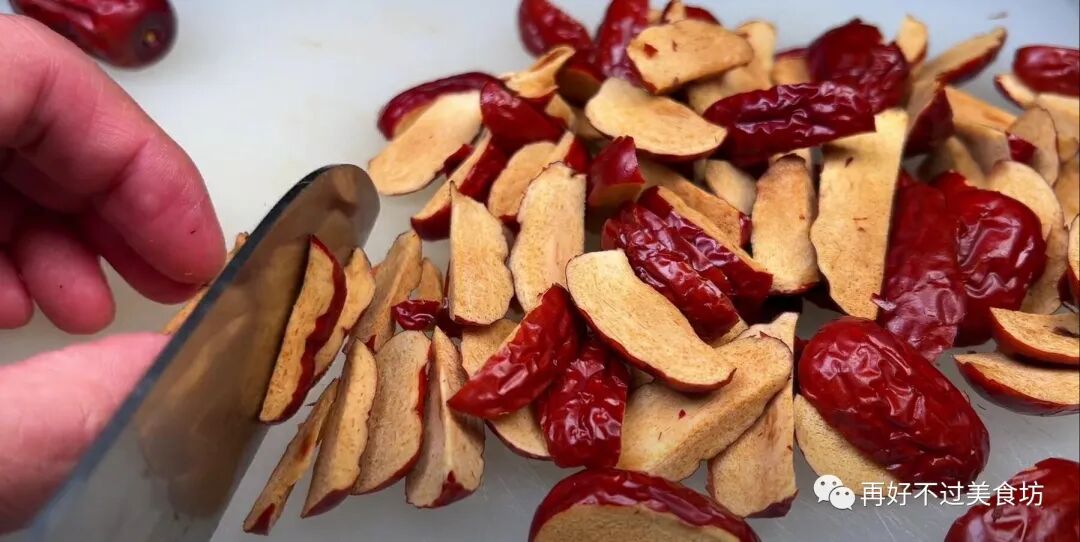 5、再准备红枣250克,去掉核,取出枣肉,全部切好,就放在大碗里备用。