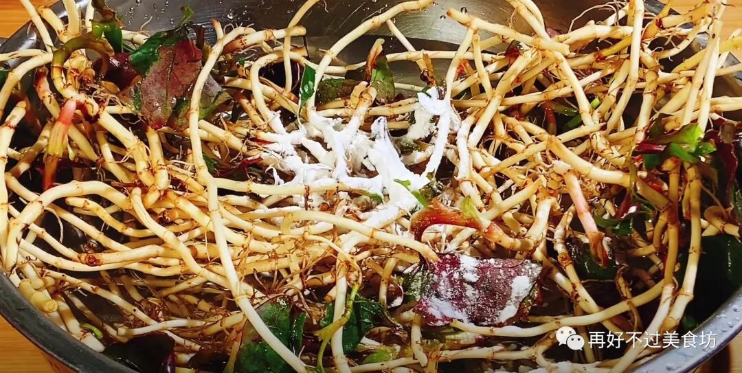 1、准备一些带叶子的鱼腥草,把它丢入盆中,加入适量的面粉,快速搅动一下,多给它抓洗几下,把表面的泥污还有脏东西,都洗出来,再用温水漂洗两遍,洗至水面清澈即可。