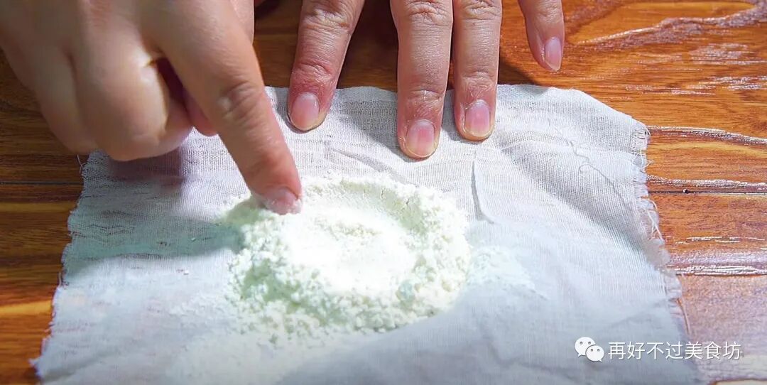 5、准备10克川贝倒在纱布中,用擀面杖擀成粉末状就可以了,然后倒入碗中备用。