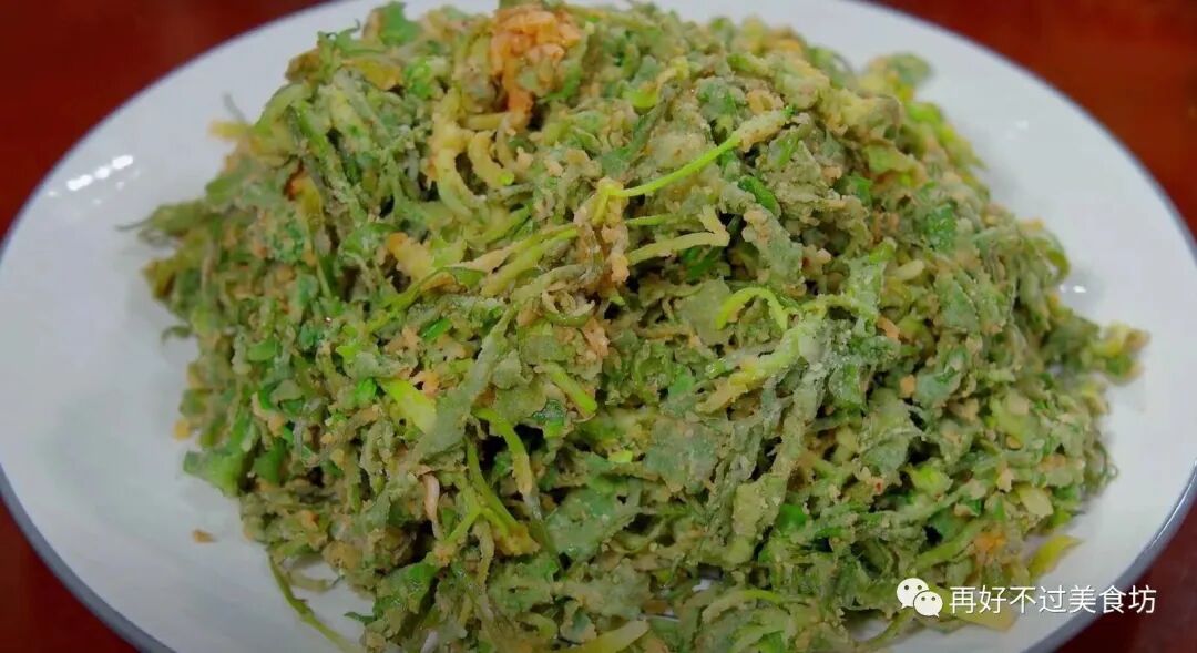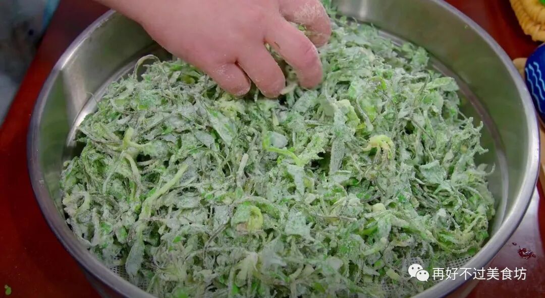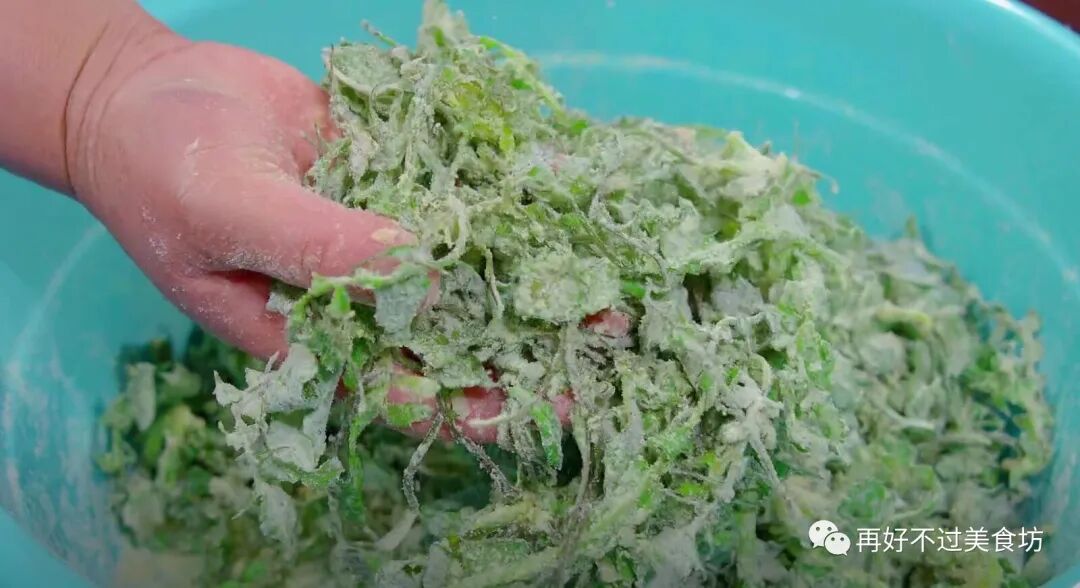 6、这样一道美味的粉蒸荠菜就做好了,吃起来的口感很清香,柔软也劲道,既可以当菜又能当主食,喜欢的朋友可以收藏起来试一下。