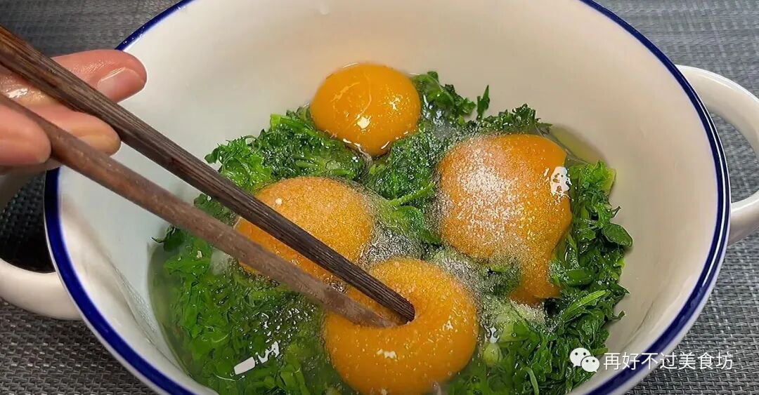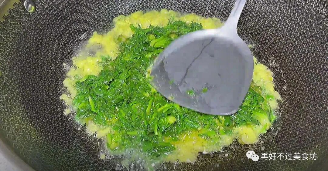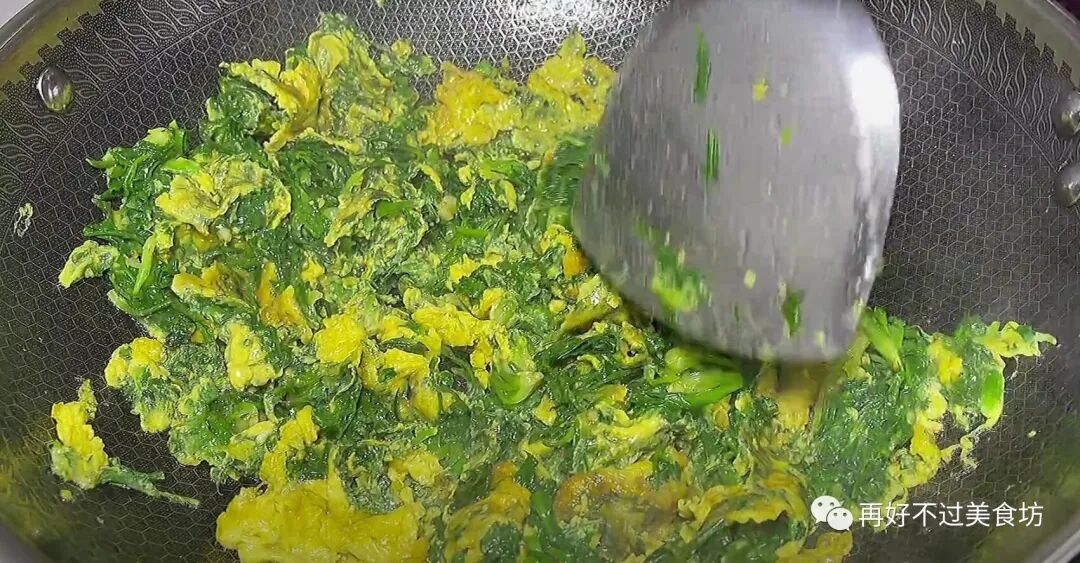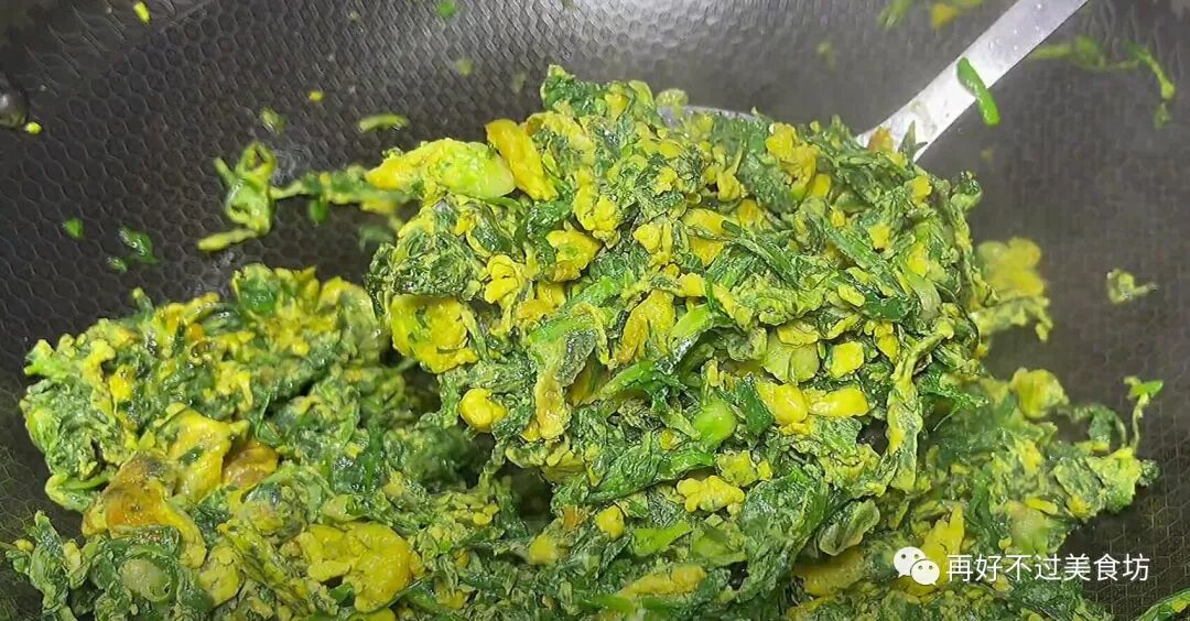 11、就这样,一个做法超级简单,鲜美好吃的荠菜炒鸡蛋就做好了,所以说野生荠菜除了用来调饺子馅,还可以用它炒鸡蛋吃,鲜嫩入味,味道一绝,喜欢的朋友,赶紧收藏起来试试吧。