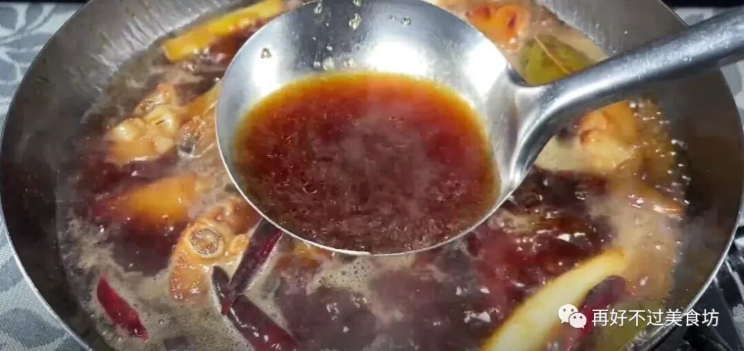 8、再加入少许食用盐,生抽,酱油适量,老抽少许,等汤汁成枣红色就可以了。