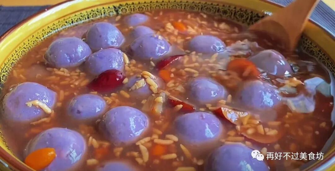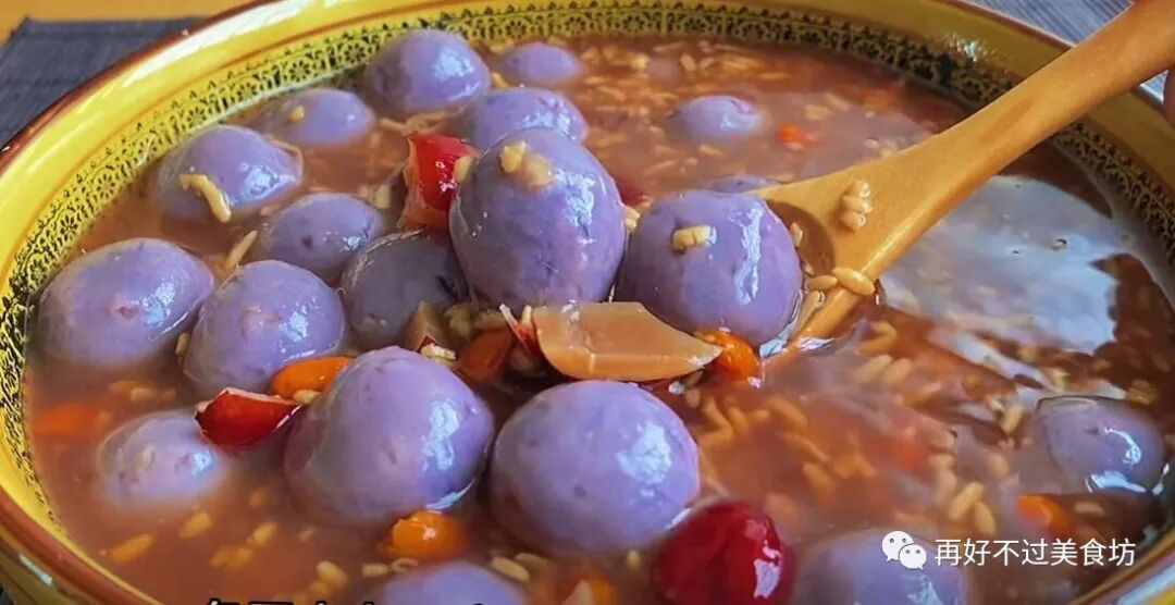 11、这道紫薯糯米丸子羹特别适合女性朋友吃,驱寒暖胃补气血,冬天来上一碗,秋裤都可以少穿两条,如果你也喜欢,赶紧收藏起来试试做吧。