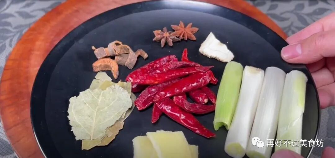 3、下面准备一点红烧猪蹄所用的大料,要想做出来猪蹄色泽红润,必须准备点冰糖炒个糖色。