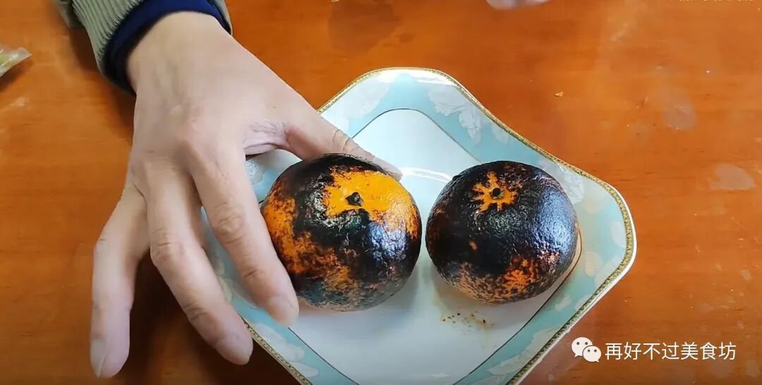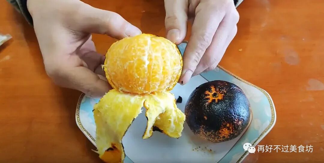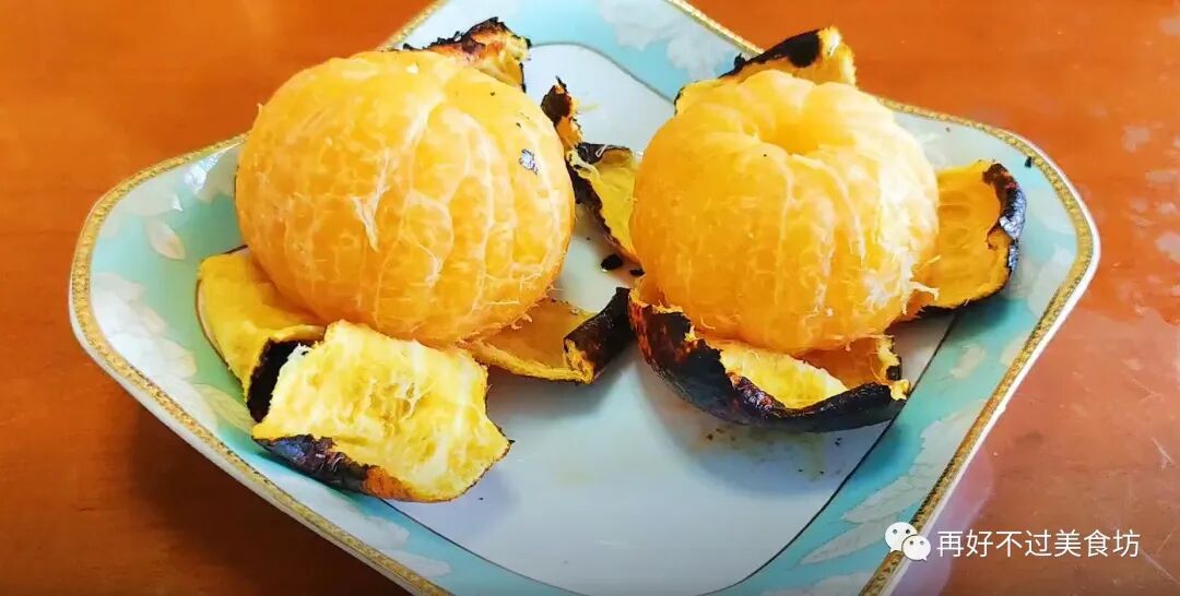 3、直到烤到表面焦黄就可以了,瞬间满屋子都是这个橘子的味道,烤好之后,等它稍微晾凉一点,就动手剥去外层的橘子皮,再趁热吃掉里面的果肉,一次一个,一天吃两次。