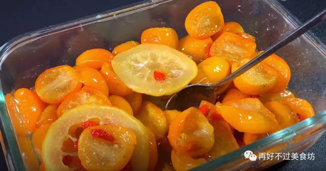 13、把它装进容器中,金桔这样做真的非常好吃,我们一次可以多做一点,像这样的冬天,就是放多久都不会坏,这样的金桔通过煮制之后,吃起来的口感非常不错,还带着柠檬和蜂蜜的香味。