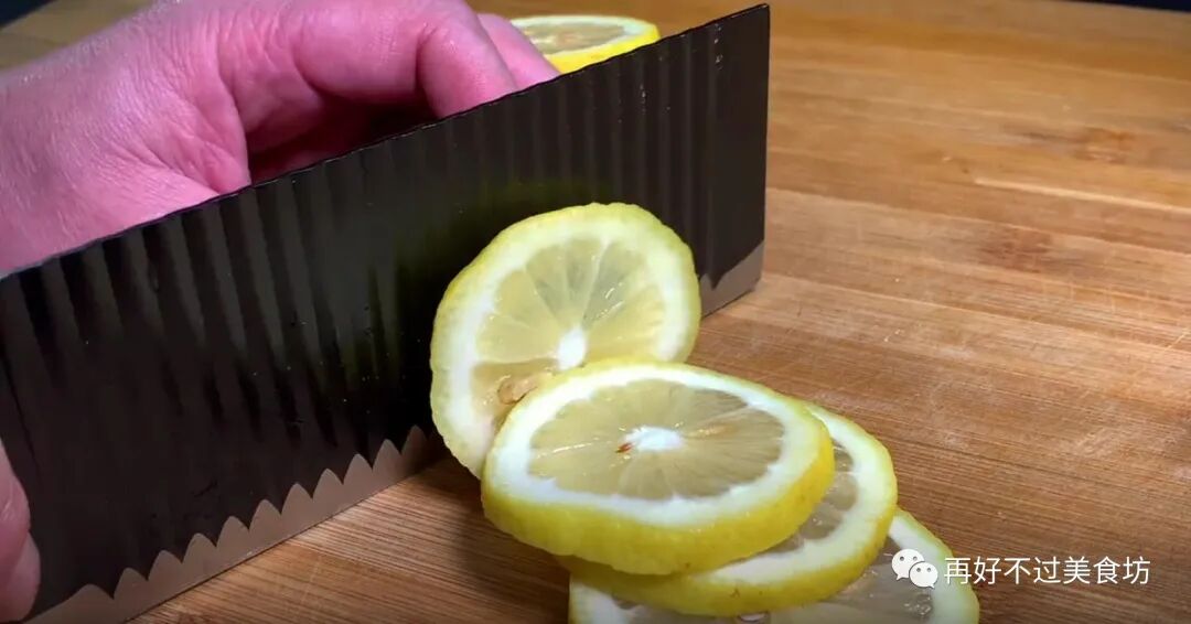 6、再准备半个柠檬,把它切成薄片,同样也把柠檬的籽都挑出来扔掉,以免影响口感,挑干净籽之后,就放碗里备用。
