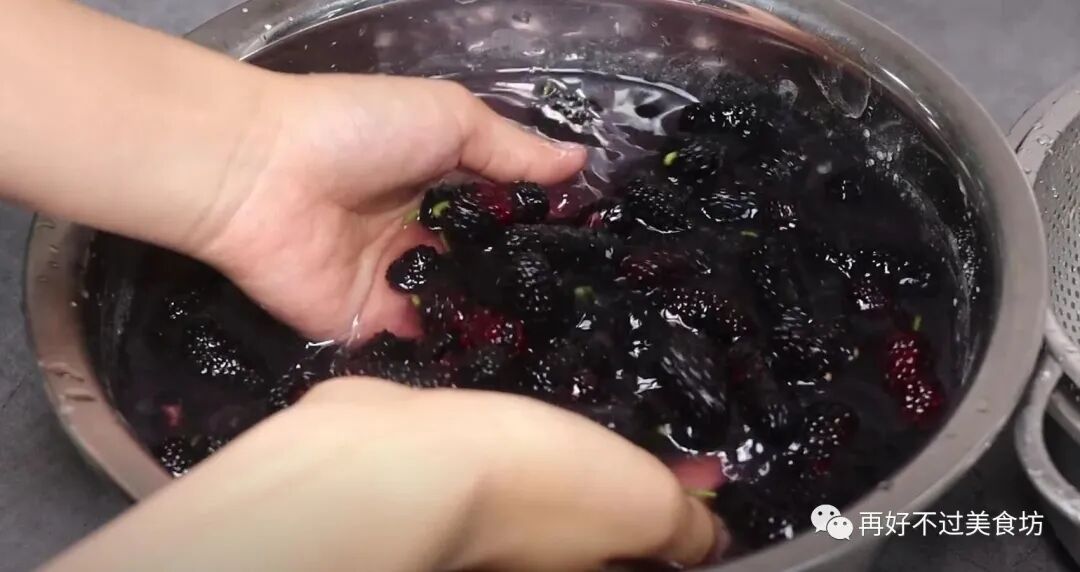 3、浸泡五分钟后,轻轻翻动清洗一下,捞出再次用清水冲洗两遍,用这个方法就可以将桑葚洗得干干净净,爱吃桑葚的朋友,可以试试这个清洗的方法。