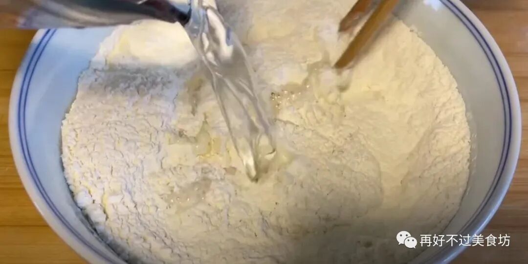 1、盘中加入300克面粉,再加入两克盐,增加面粉的筋性,用筷子搅合均匀,再用220毫升的温水搅面,边倒边搅拌,接着再加入5克食用油,用筷子继续搅,直到把面搅成细腻光滑的样子。