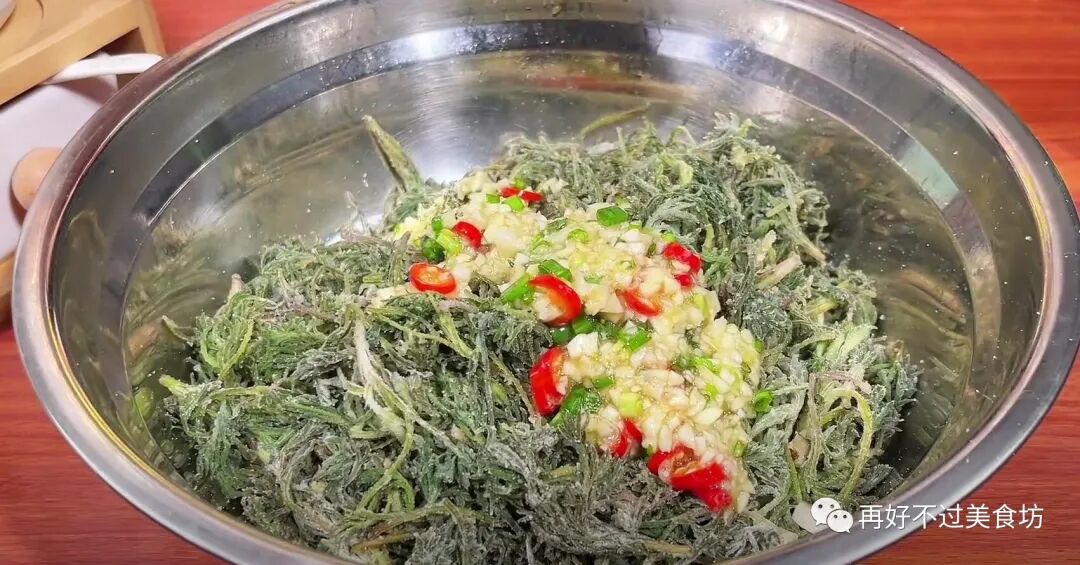 10、就这样,一道咸鲜美味的粉蒸白蒿就做好了,这道美食不但营养丰富,吃了以后对我们的身体好处多多,喜欢的朋友赶紧收藏起来试试吧。