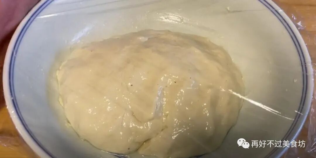 2、搅好后,继续在上面淋入一点油,一是锁住水分,二是用油封住,它的延展性会非常好,盖上保鲜膜,放一边醒面两个小时以上。