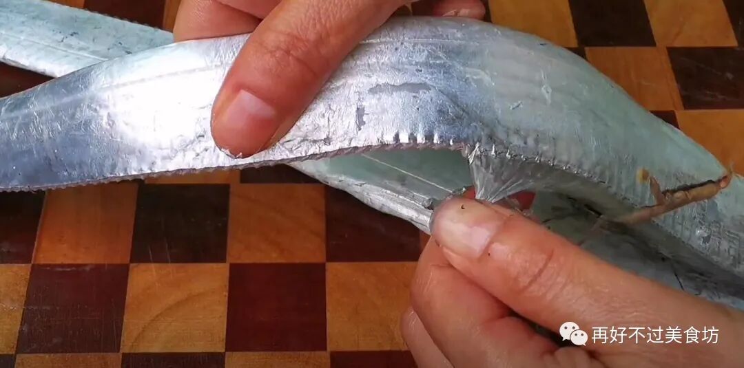 1、买了两条新鲜的带鱼,如果带鱼鱼皮没有破损,肉质有弹性,说明带鱼是新鲜的,先用手把鱼皮撕下来,别用剪刀剪,用手撕得比较快,比较干净。