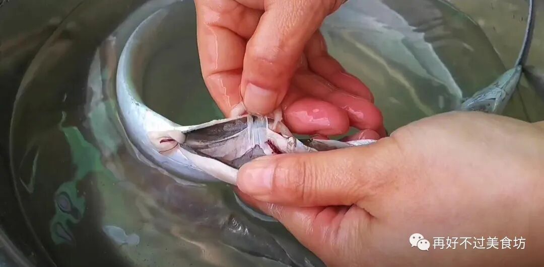 2、然后把它清洗一下,把内脏去除掉,再把黑膜撕掉,洗干净后把头切下扔掉,然后再把带鱼切小段备用。