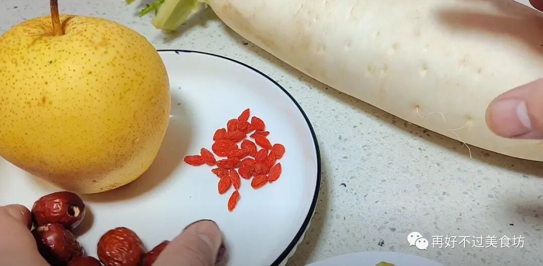主要食材:白萝卜、雪梨、大枣、枸杞、花椒、生姜、红糖、黄冰糖