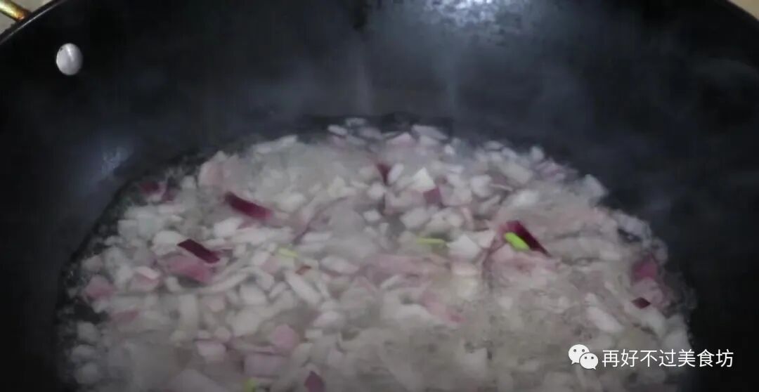 2、锅中放入清水,倒入洋葱,大火将水煮开,水开后倒入冰糖煮至融化。