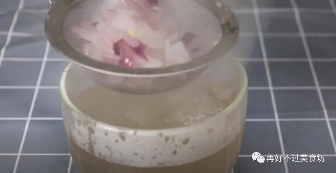 4、融化以后关火出锅,用滤网过滤一下,倒入杯中,洋葱冰糖水就煮好了,就是这么简单。