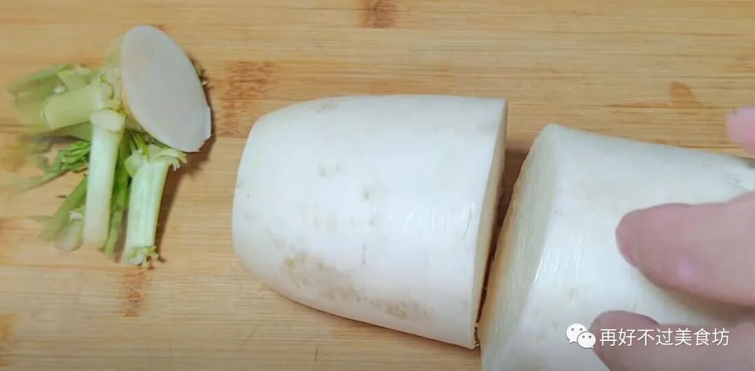 4、接下来把白萝卜去头,再切下一小块,剩下的下次再吃,据说这个汤喝三天就有效果。
