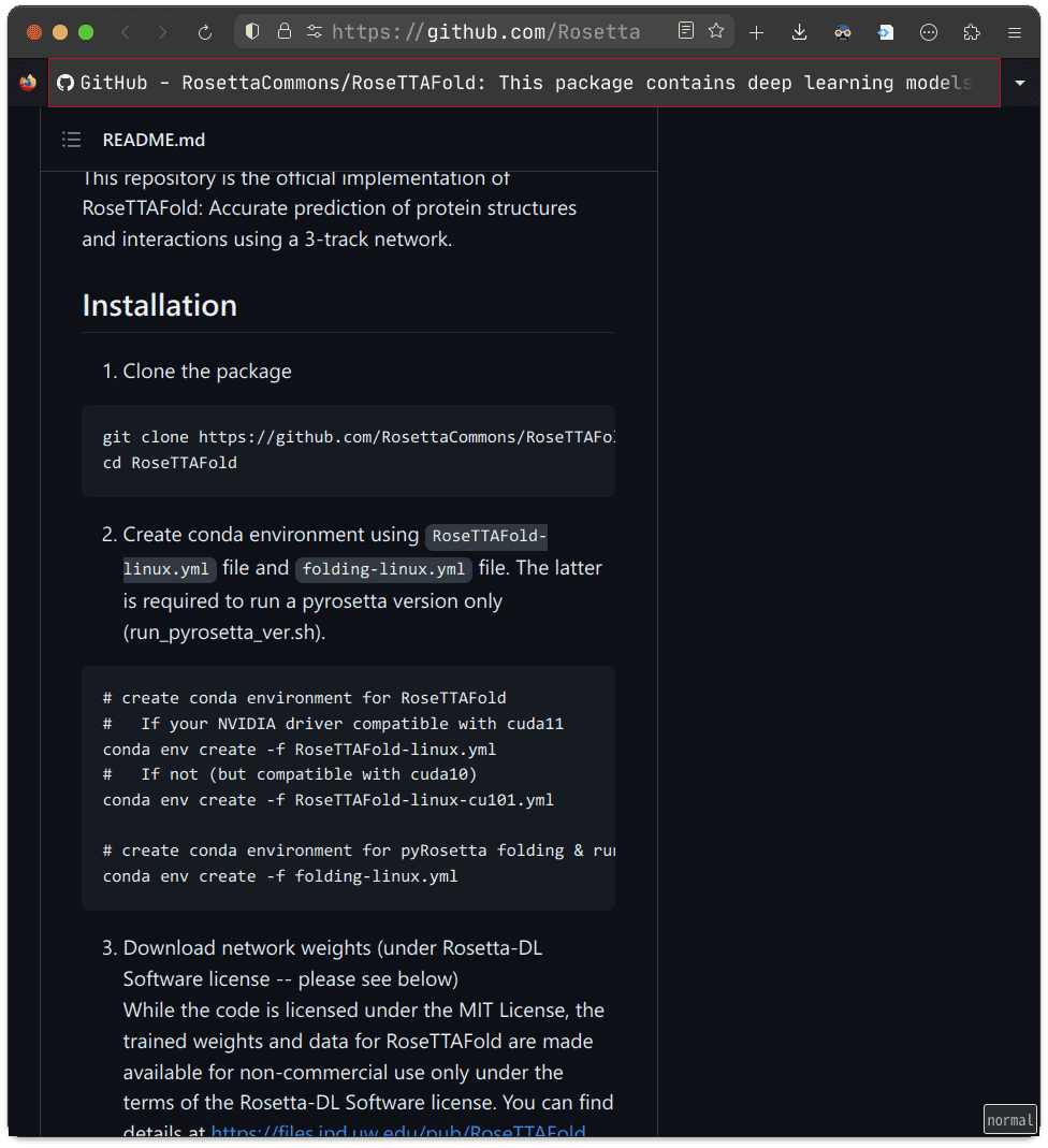 RoseTTAFold 源码是开源的,可以直接到 GitHub 下载。不过在开始之前我还是要说说本地搭建的要求: