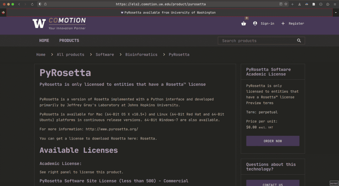 PyRosetta in UW: https://els2.comotion.uw.edu/product/pyrosetta[12]
