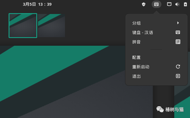 重启之后,我们可以看到右上角多出一个输入法配置。点击它进行配置。
